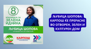 Во пораката кон жителите на оваа скопска општина, носителот на листата за советници на Коалицијата за зелена иднина во Општина Карпош и ко-претседател на зелената партија ДОМ, ветува дека „Карпош ќе биде општина што ќе стои покрај сите вас.“